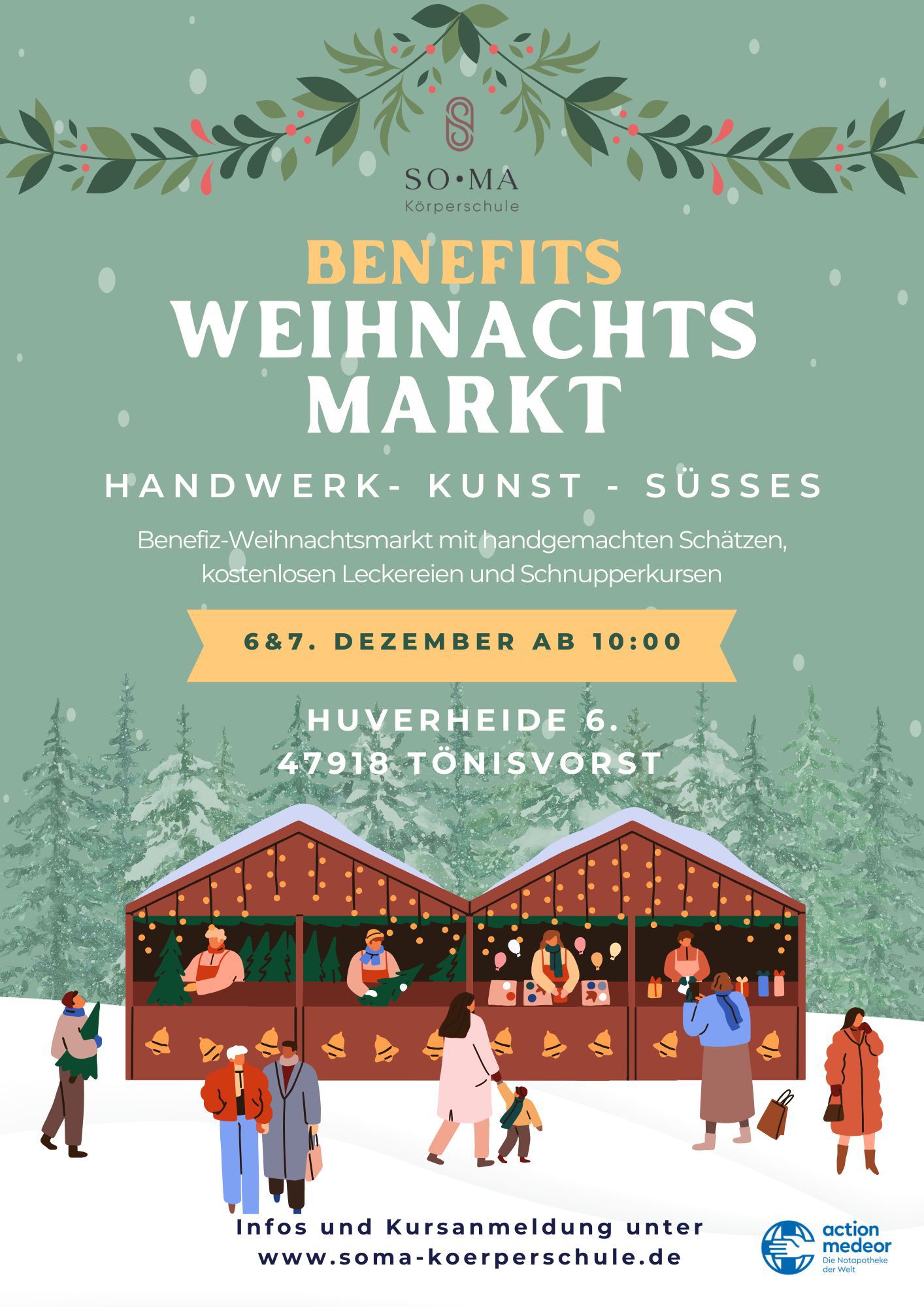 Am zweiten Adventswochenende, vom 6. bis 7. Dezember, verwandelt sich das Gelände der SOMA Körperschule in Tönisvorst in einen stimmungsvollen Weihnachtsmarkt – und das für einen guten Zweck.